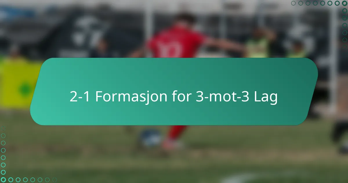 2-1-formasjonen tilbyr flere fordeler for 3-mot-3-lag, inkludert forbedret defensiv struktur, økt angrepsvariasjon og muligheter for ferdighetsutvikling. Denne formasjonen fremmer effektive lagdynamikker og kan tilpasses ulike spillsituasjoner, noe som gjør den til et allsidig valg for spillere.