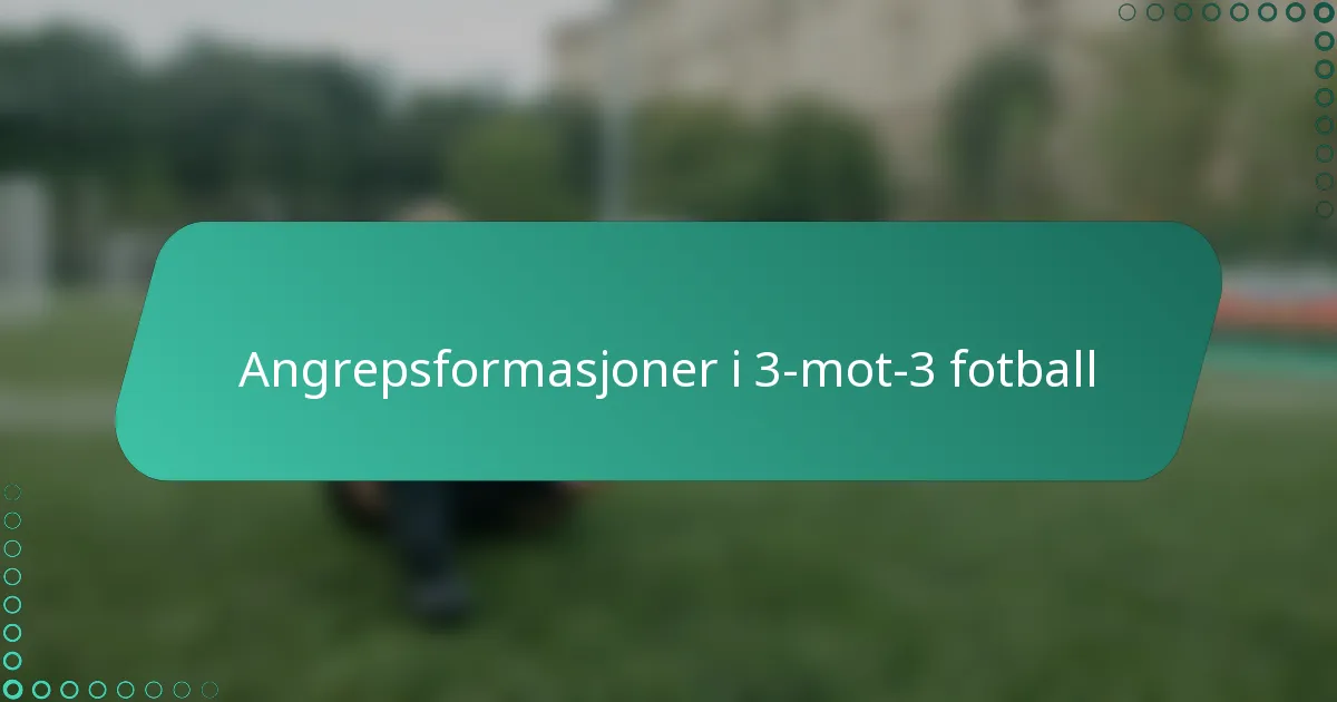 3-mot-3 fotball er en dynamisk og hurtig variasjon av det tradisjonelle spillet, der lag med tre spillere må utnytte ferdigheter og samarbeid på et begrenset område. Nøkkelangrepsformasjoner, som 1-2, 2-1 og 3-0, spiller en viktig rolle i å forbedre offensive strategier og skape scoringsmuligheter. Effektiv kommunikasjon og definerte spillerroller er avgjørende for at lagene skal kunne tilpasse taktikken sin og maksimere sitt offensive potensial.