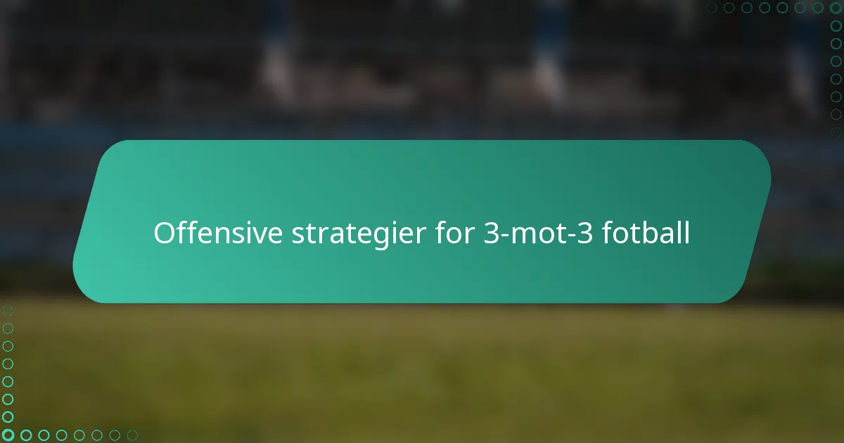 I 3-mot-3 fotball er effektive offensive strategier avgjørende for å maksimere scoringsmuligheter og overmanne motstandere. Ved å fokusere på romutnyttelse, spilleroverbelastninger og raske pasningsteknikker kan lag forbedre sitt angrepsspill. I tillegg er det viktig å fremme samarbeid og kommunikasjon blant spillerne for å utføre vellykkede offensive manøvrer og ta raske beslutninger under press.